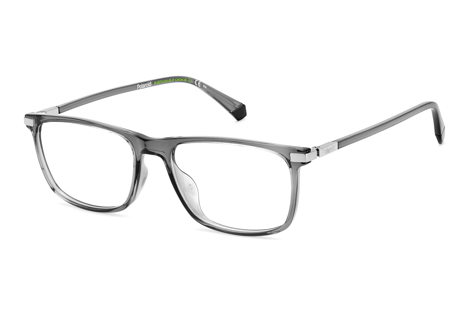 With no frills and state-of-the-art materials and craftsmanship, these men's glasses stand for stylish design and self-confidence. Full rim frames completely enclose the lenses within the frame. For a convinced eyeglass wearer, any other frame style is ruled out, with very few exceptions. Rectangular models are particularly suitable for round and oval faces. The rectangular shape also builds a bridge to corners and edges from an image aspect. Plastic frames like these combine durability and are comfortable to wear. The PLD D458/G is a very snug fit on the ears and nose.
